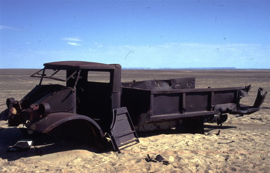 מצאנו דיונות נפלאות, יער מאובן שלא כתוב בשום מקום, משאית של הצבא הדרום אפריקני שנפגעה מתקיפת מטוס ועמדה מתה וקפואה בזמן ושקענו בביצה של הקטרה, השקע הגדול 80 קילומטרים דרומה מאל עלמין. שבגללו ייצב שם מונטגומרי את קו ההגנה שלו נגד רומל, שכן שום צבא לא יכול לחצות את הקטרה – מלחה ענקית ומהפנטת, מבלי לשקוע. יצאנו מהנאה מכיוון ששלחנו את הג'יפ השני לקושש עצים מאובנים ביער שכוסה בחולות הסהרה, בונים רפסודת אבן איתה צפנו עד החולות.