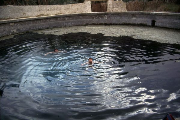 מהמקדש שנמצא על גבעת אע'ורמי נשקפים לכל עבר מטעי הדקלים. מים זורמים בתעלות ממקום למקום. מים חמימים שמגדלים ירקות ועצי הדר. חום ומים, זה מה שצריך כדי שיהיה טוב. ובחודש דצמבר בו הייתי, היו הימים נעימים והלילות צוננים. אבל בלילות היינו הולכים, כל חמשת התיירים, לבריכת קליאופטרה (עין ג'ובה) שהיא במרחק של קילומטר וחצי מהמרכז. אומרים שקליאופטרה אהבה את הבריכה ובנתה אותה. יש לא מעט בריכות כאלו בסיווא. בריכות אובאליות של מים חמים שבועות של גז עולות מקרקעיתן וכל כך נעים לשחות בהן שאין שום סיבה לצאת. המדבר האלים שמצפון, הדיונות שעוטפות את הנאה מכל כיוון והמים שפורצים מהאדמה, משקים את הצומח ומיטיבים עם השחיין. זו כניראה הסיבה האמיתית שהניעה מלכים להגיע לפה. וסתם מטיילים.