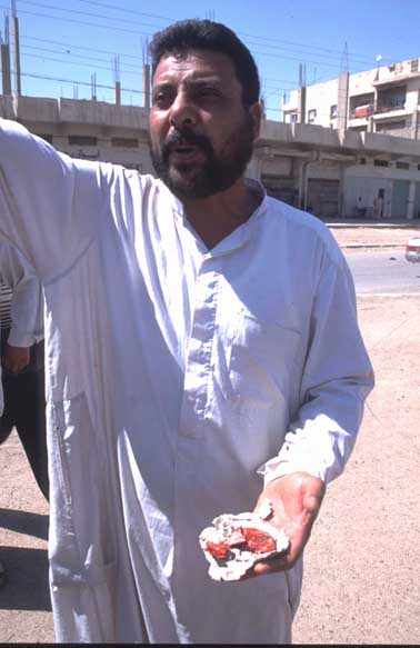 “Go! Go!” shouted the American soldiers nervously as we drove past the column of Hummers near the mosque at the entrance to Faluja. The main road was a jumble of vehicles, jittery American soldiers and clusters of Iraqis waving Iraqi flags gathered on the traffic islands.